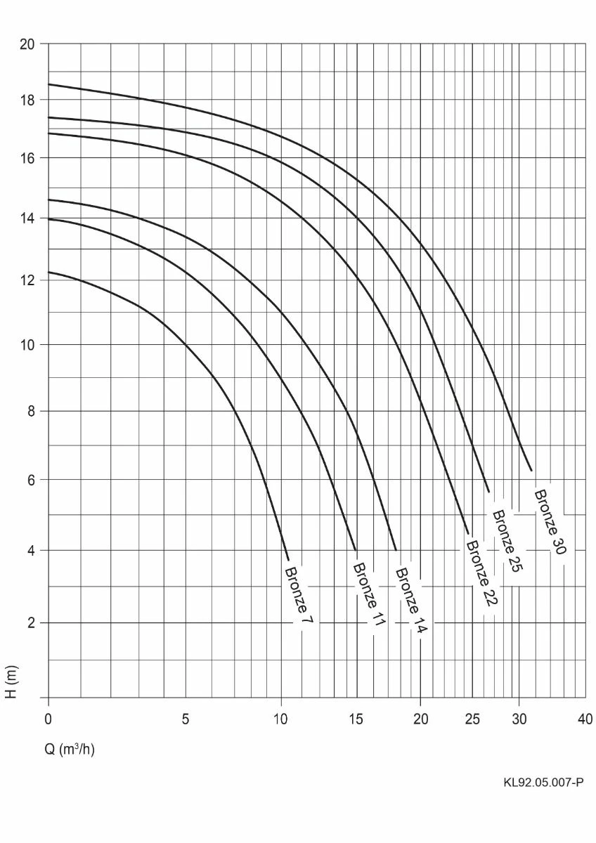 Eéntraps, zelfaanzuigende blokpomp met geïntegreerd filtermandje. Zwaar bronzen pomphuis voor optimale stabiliteit en geluidsarme loop.