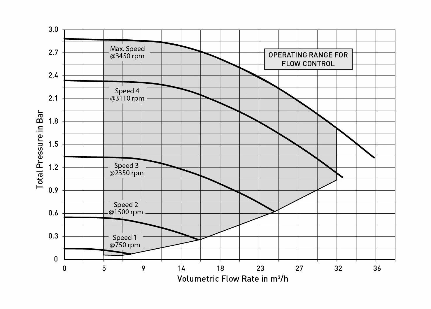 - Capaciteit van 5 tot 32 m³/uur, instelbaar.
