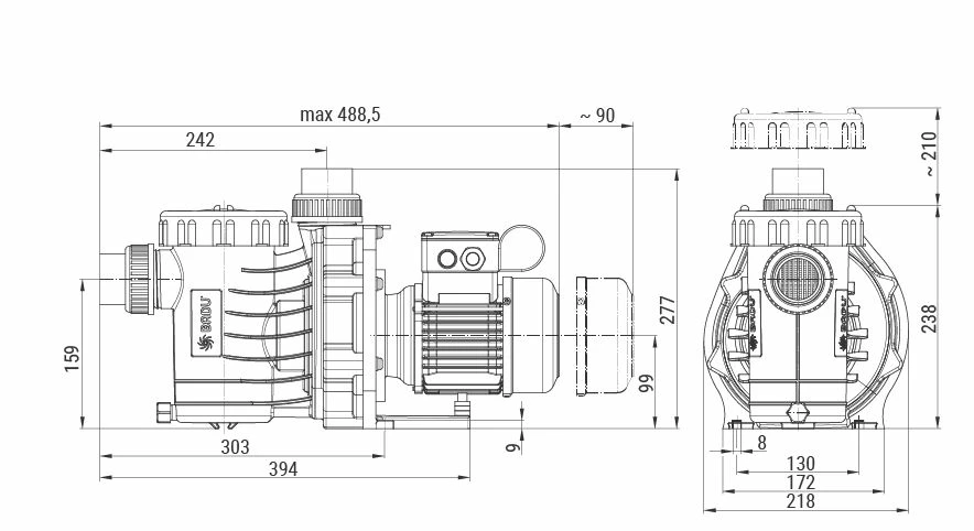 Deze zelfaanzuigende zwembadpomp is een hydraulisch geoptimaliseerd model voor kleinere zwembaden. Dezelfde aansluitingen en installatieafmetingen als pompen uit de serie BADU Magic en dus gemakkelijk verwisselbaar. De pomp heeft een transparant deksel en voorfilter van 0,5 l (exclusief voedingskabel).