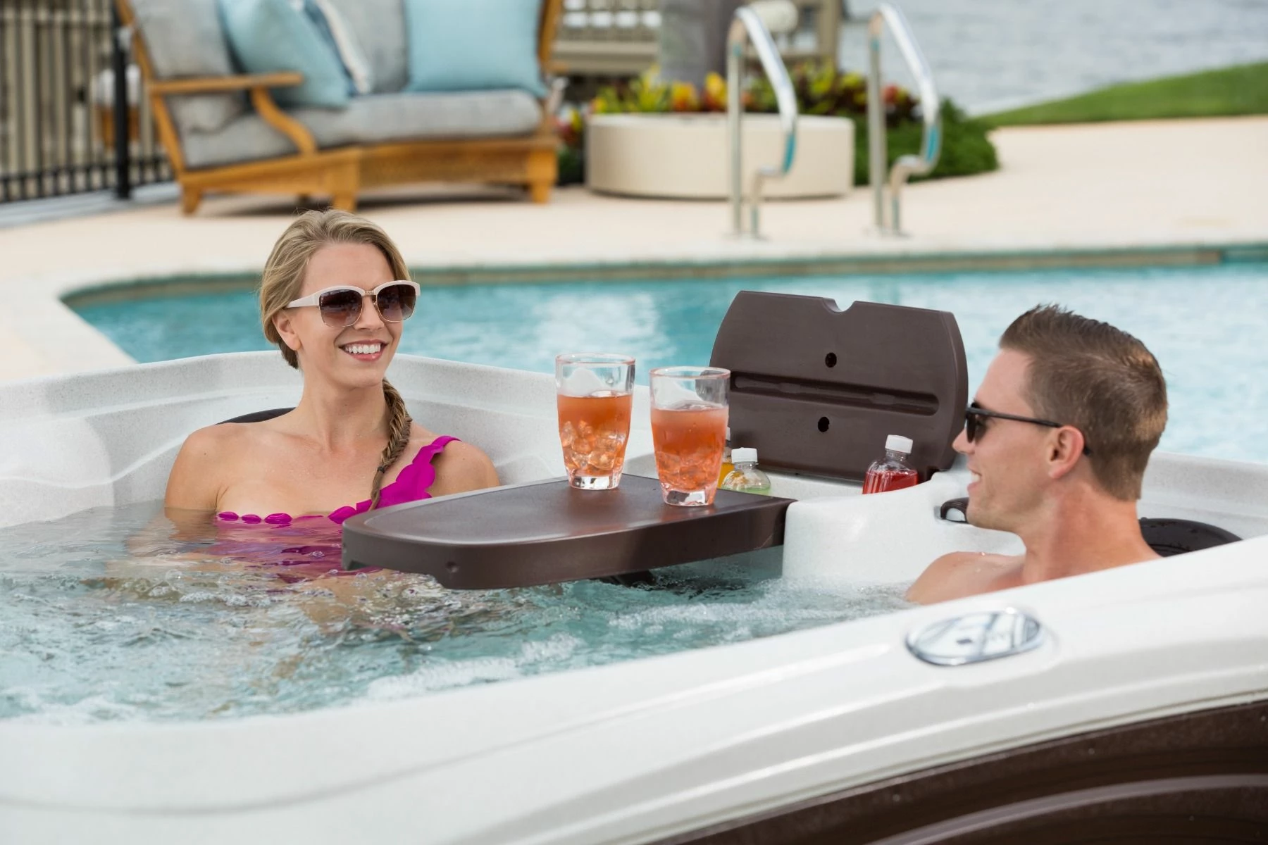Deze energiezuinige spa met een Syncrylic™ unibody-constructie die vrijwel onverwoestbaar is, wordt geleverd met een ingebouwde koeler, opklapbare tafel, Weather Shield Super Seal Cover, digitale bediening, Easy Kleen / Convex2 Filtratie en verstelbare waterfontein met programmeerbare LED-achtergrondlamp – Alle voordelen van een luxe spa voor een fractie van de prijs.