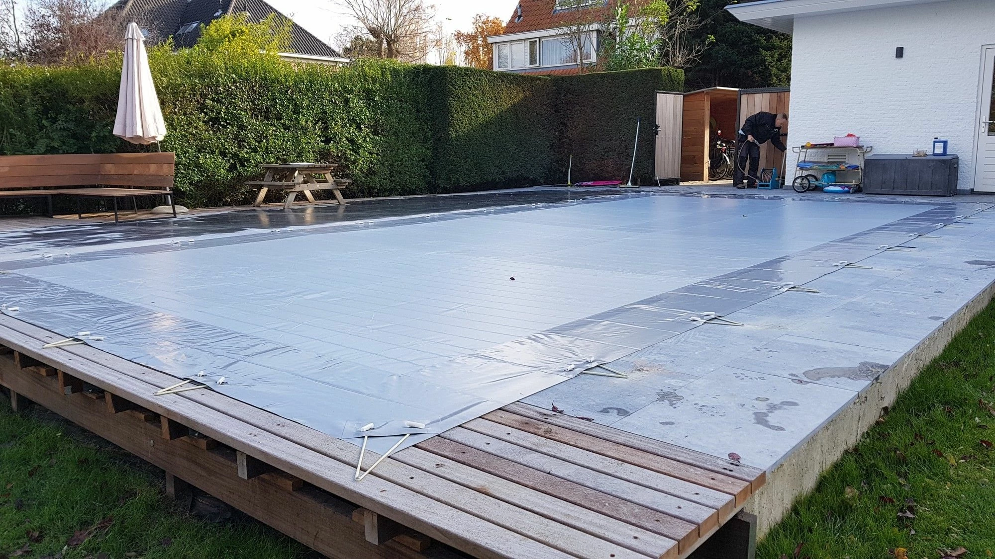 De onderkant van het dekzeil dat met de vloer in aanraking komt is zandkleurig om geen risico te lopen op verkleuring.